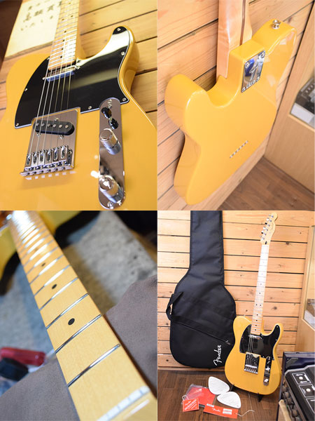 2021年製。バタースコッチブロンドの王道カラー!シンプルで使い勝手の良い定番モデルです。ボディー材にはアルダーが使用され程好いエッジ感と奥行きのあるサウンドが魅力です。オールドライクなルックスながら6ウェイサドル採用でピッチ感が良く、22フレット仕様で音域も広くとれるよう工夫されています。オリジナルシングルピックアップはパワーバランスが良くテレキャスらしい煌びやかで芯のあるサウンドが楽しめます。使用感が少ない大変綺麗な個体です。フレット残量も8分山以上とタップリ残っており演奏性も良いです。気になった方は是非この機会に! 重量3.8kg。 付属品:オリジナルソフトケース・紙類・レンチ。