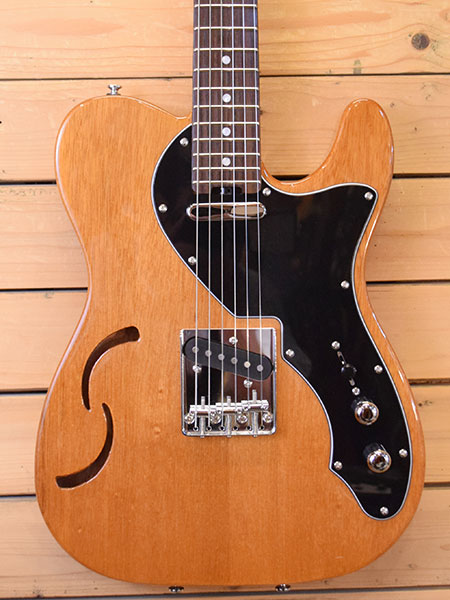 2022年製。マホガニーのホロー構造ボディーを採用したシンラインテレキャスタイプです。ホロー構造らしい程好い生鳴りとテレキャスのハードウェアから鳴るブライトで奥行きのあるアンプサウンド。ミディアムジャンボフレット採用で演奏性も良い上に重量2.6kgと超軽量ウェイトも魅力です。ピックガードに薄っすらピッキング傷はあるものの全体的には使用感の少ない大変綺麗な個体です。フレットの減りも殆ど無く8〜9分山と演奏性もバッチリ!ネックジョイントプレートはフリーダム製の物にアップグレードされています。コスパの良いお勧めな一本です。 重量:2.6kg 付属品:汎用ソフトケース。