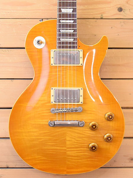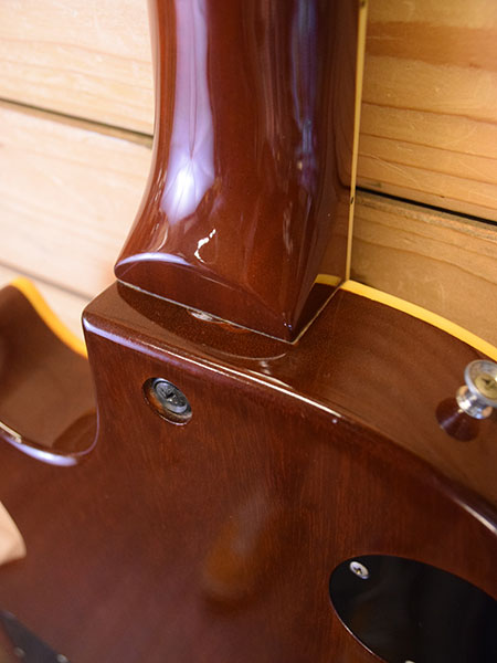 1989年製。Made in Japan!このモデルで採用された新工法のボルトオン構造。ディープジョイントを3点のボルトで固定しています。但し本機は接着されていますのでネックを外すことはできません。ウッドスペックはマホガニー+バスウッドTOPボディーにマホガニー+ローズ指板ネックが採用されておりレスポールらしいサウンドが楽しめます。フレット残量は6〜7部山ほどと演奏性はまだ良い印象です。ネックシェイプはボリューム感のあるトライアングルグリップを採用。個性的なスペックですが使いにくい印象は無く良いモデルに感じます。気になった方は是非この機会に!