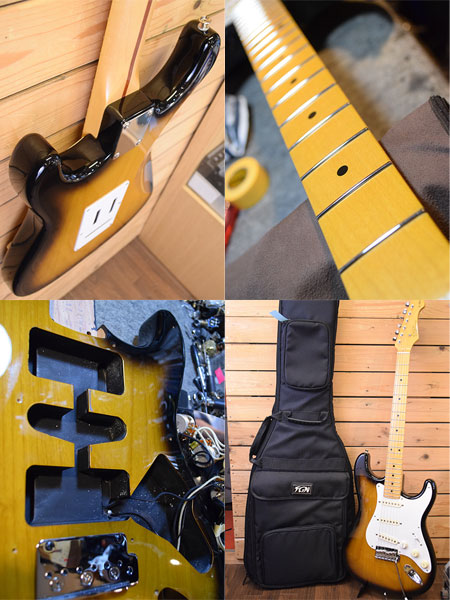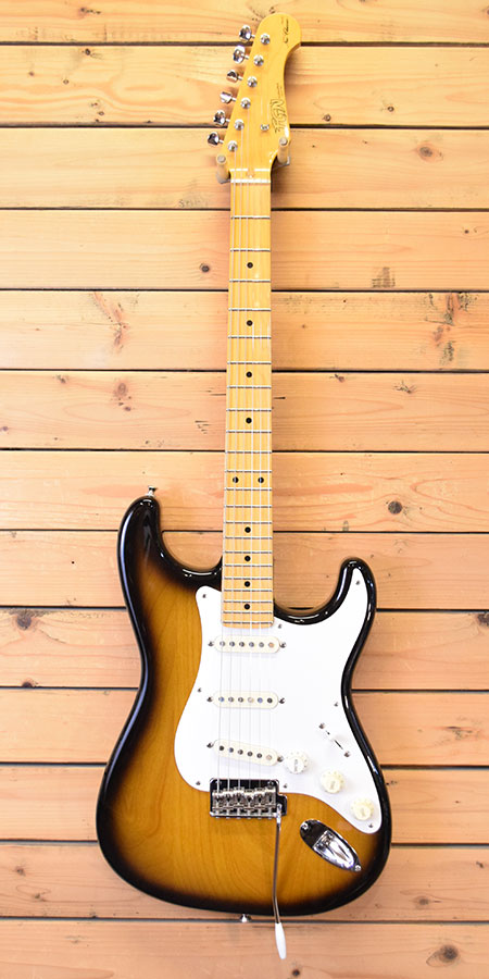 2009年製。日本製のクオリティーに加えアルダーボディーやGotoh製ハードウェアを採用するなど超コスパに優れた人気シリーズの57仕様ストラトモデルです。メイプル指板に1プライピックガード、タバコサンバーストカラーを採用した渋い個体です。曇りの無い煌びやかなサウンドです。使用感少な目な綺麗な個体です。フレット残量も8分山以上とタップリ残っており演奏性も良いです。国産でお手頃なストラトをお探しの方に是非お勧めな一本です。 重量:3.4kg 付属品:オリジナルギグケース(ケースは使用感有り。外ポケのチャック破損。メインチャックも1つのみです。ケースとしてはご使用頂けますがオマケ程度とご承知ください。)