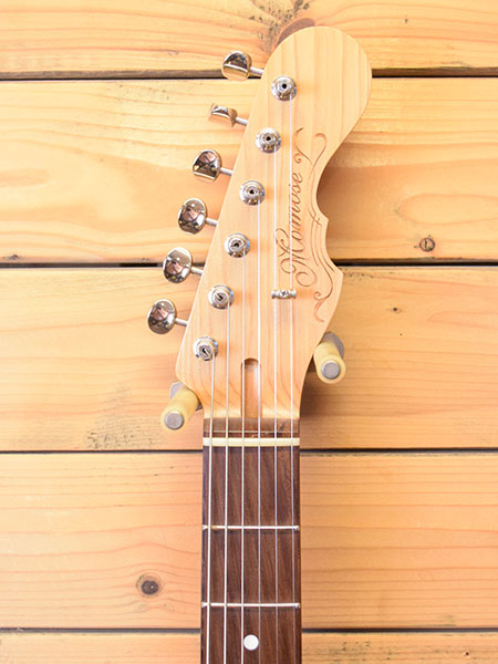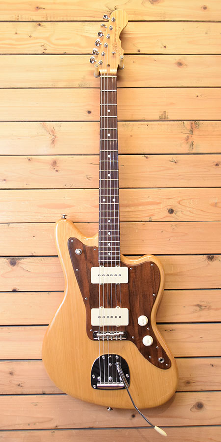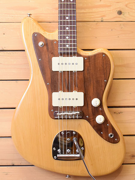 2022年製(新品売価276,980円)。和材の能登ヒバを使用したJAZZ MASTERモデル!ボディーは贅沢に1枚(1ピース)単板仕様!ネックはヒバ+マダガスカルローズを使用しています。ピックガードにはウォルナット材が使用されており木の温もりを感じられる優しいルックスです。やや出力高めなアルニコXピックアップが搭載されておりブライトで歯切れの良いサウンドが印象です。歪ませてもコード分離が良く煌びやかさも演出できます。ボディーサイドに傷はあるものの全体的には使用感の少ない綺麗な個体です。フレット残量も8分山以上とタップリ残っており演奏性もバッチリ!3.3kgと軽いウェイトも魅力!個性的なジャズマスをお探しだった方に是非お勧めな一本です。 重量:3.3kg 付属品:オリジナルセミハードケース・レンチ・紙類。
