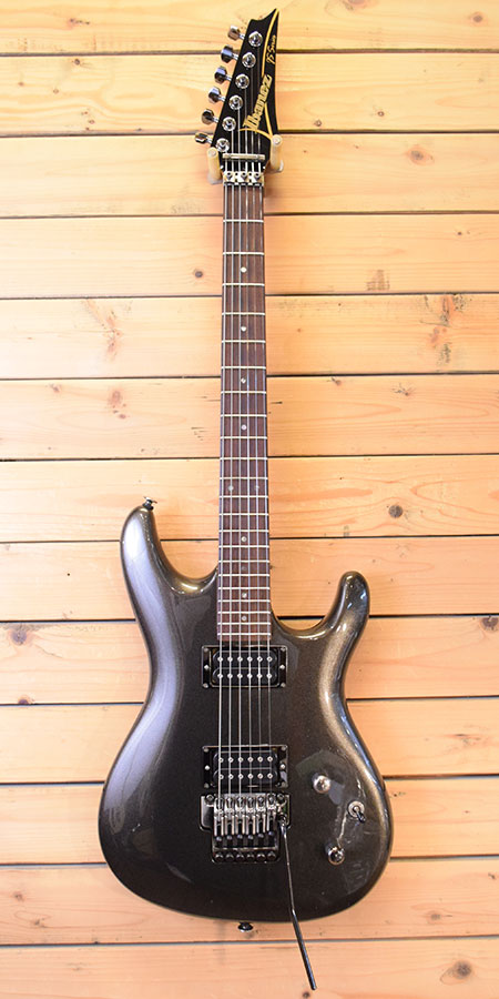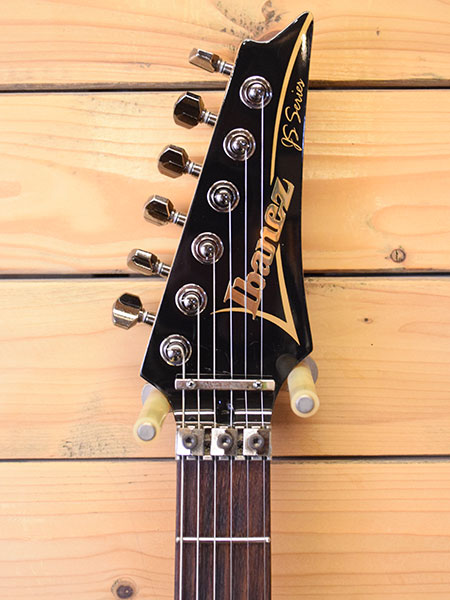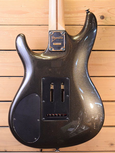 2003年製 Made in Japan(フジゲン製)のJoe Satriani Modelです。抱え込みやすい美しい曲線ボディーにDimarzio Paf Pro(F)&Fred(B)ピックアップを搭載し滑らかなアーミングのEdge Proブリッジを採用モダンサウンド!それに加えアイバニーズでは珍しい250Rラディアス指板にミディアムハイサイズフレット(6105)を採用したビンテージギターライクなフィーリングとなっています。小傷など外装には多少の使用感はございますがフレット残量は8分山程と年式の割にタップリ残っており演奏性バッチリな個体です。スイッチ付きトーンポット(コイルタップ付)は新品交換済みです。お探しだった方は是非この機会に。