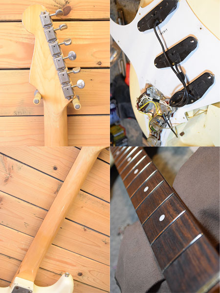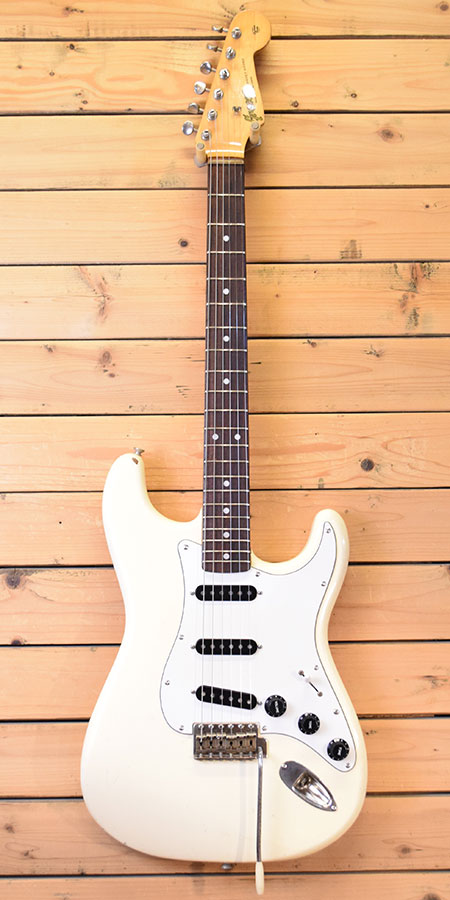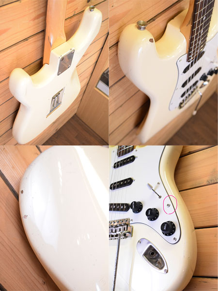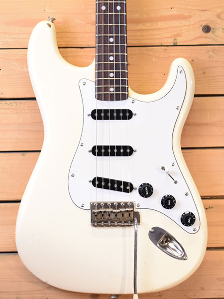 1980年製。グレコの黄金期Super RealシリーズのSpacy Soundグレード!それまでよりもやや肉厚なネックグリップと10.8ピッチの刻印入りサドルを採用。ボディー材にはセンが使用されブラトで歯切れの良いサウンドが印象的です。ナットはブラス製に交換されておりより音伸びが良い印象です。ピックガードビスはすべて新品交換済み(以前にピックガードビスが1つ増やされています)。サドルビスも1つ新品交換致しました。フレット残量は5〜6分山程でやや低めですがビビりや音詰まりはございません。全体的にも傷など使用感がございますがバッチリ調整・クリーニング済みですので即戦力コンディションです。貴重な80年代グレコストラトです。お探しだった方は是非この機会に。 重量:3.5kg 付属品:汎用ギグケース(CNB製)