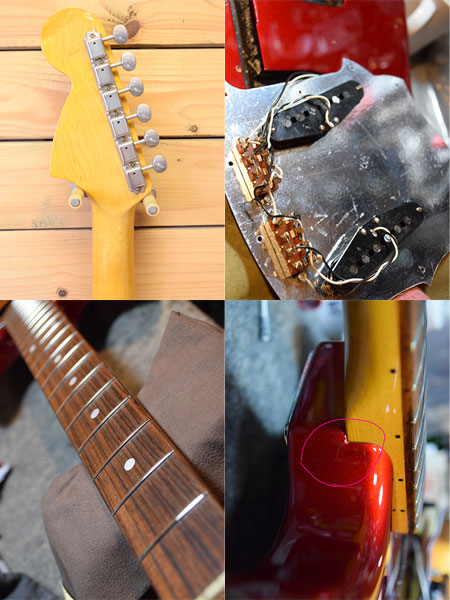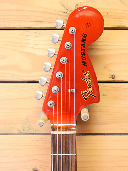 2010-12年頃の個体です。マッチングヘッド仕様の1969ムスタングです。コンター採用の抱え込み易いボディーにナット幅40mmのショートスケールネックを採用。煌びやかでミッドレンジ豊かな唯一無二のサウンドです。ペグの曇りはございますが目立った傷は無く全体に艶感も残ったコンディションの良い個体です。フレット残量も8分山以上とタップリ残っており演奏性もバッチリです。ネックジョイント付近にボルトオンあるあるの塗装クラックはございますが木部には問題ございません。着せ替え用の黒ピックガードも付属しています(オマケPGはやや使用感ございます)。ストラトやテレに比べ数が少ないモデルですのでお探しだった方はお早めに。 重量:3.5kg 付属品:汎用ソフトケース・黒ピックガード(おそらくフェンジャパ純正部品です)