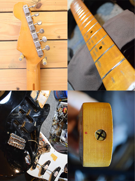 1988年製。すでに37年経過しておりビンテージリイシューとはいえ大変良い風格の個体です。実用的なモディファイも施されており、ピックアップはCustom Shop FAT50sに交換され、カラハム?スチールブロックやKTSのチタンサドルなどに交換されています。フレット残量は5〜6分山とやや低めですがネックコンディションも良好で演奏性は良い印象です。10-46ゲージにて調整済みでトラスロッドの余裕もございます。ピックガード黄ばみや写真では映りにくい使用による傷等(一部タッチアップ部分もございます)が相まって良いオーラを放っております。80年代リイシューも貴重となっております。気になった方は是非この機会に。 重量:3.5kg 付属品:オリジナルハードケース・紙類