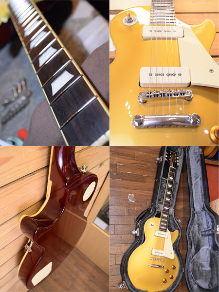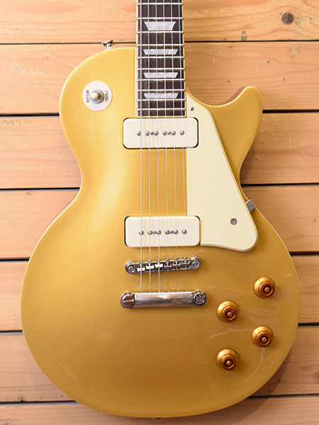 2014年製。Tune-O-Maticブリッジ採用年の1956年仕様レスポールスタンダードです。演奏性の良いミディアムジャンボフレットにグリップは太く握り応えのある50sグリップを採用。ピックアップには従来より音量感のあるP-90 Proがマウントされています。ボディーマテリアルはマホガニー+メイプルトップの王道スペックです。同じロッドカバーで限定のパフォーマンスモデルも存在しますが本機はそれとは別です。 目立った傷も無く使用感の少ない綺麗な個体です。10-46ゲージにて調整済みでトラスロッドにも十分な余裕がございます。フレット残量はローフレに薄減りはございますが全体で8分山以上とタップリ残っており演奏性もバッチリです。重量も理想的な3.9k!現在人気のP-90搭載レスポールゴールドです。お探しだった方は是非この機会に。 重量:3.9kg 付属品:オリジナルハードケース ■通信販売の際は別途送料一律\1,500(離島は除く)