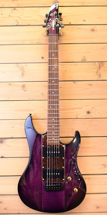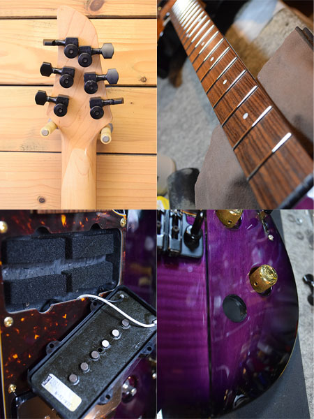 ダウンチューニングでもテンション感を確保するためスパーロングスケール(666.8mm)を採用したレアモデル!本来はSSHピックアップレイアウトの本機ですが大胆にジャズマスターピックアップ2基仕様に改造されています。JMピックアップをマウントするにあたりザグリを拡張し更にピックガードを製作し元のザグリを隠すという作業が施されております。クオリティから上記作業はおそらく工房によるものかと思われます。スイッチ・POT・ジャックは当店で新品交換致しました。 現在11-48ゲージ(2音下げチューニング)にて調整済みでトラスロッドにも十分な余裕がございます。フレット残量も8分山以上と演奏性も良い個体です。Cチューニングでジャズマスサウンドはとても新鮮です。太く煌びやかなクリーンと芯のある歪みはむしろ現代的なサウンドかもしれません。珍品ですが魅力的なぎたーです。気になった方は是非この機会に。 重量:3.1kg 付属品:オリジナルハードケース・紙類・レンチ・鍵 ■通信販売の際は別途送料一律\1,500(離島は除く)