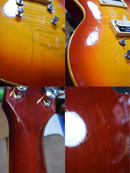 1981年製。Super Real期のフレイムメイプルトップトップを採用したEGFシリーズのSuper Soundグレード!電装系はUSパーツにて組み直されピックアップにはSeymour Duncan JB&59の鉄板コンビがインストールされています。ブリッジはゴトー製、テイルピースはロック式となっております。さらにはペグはグローバー製に交換された即戦力仕様です。※ストラップピンはシャーラー製ですがストラップ側はありません。 年式相応の使用感がある貫禄の個体です。写真では映り辛いですがボディー全体に塗装クラックが入っております(ボディートップには突板にクラックがございます)。ネック裏ヘッド付近にもクラックがございますが塗装クラックのみで材には問題ございません。フレット残量は7〜8分山程と雰囲気の割にタップリ残っており演奏性もバッチリです。現在010-46ゲージにてネック調整済みでトラスロッドにも十分な余裕がございます。演奏性と雰囲気の良い個体です。気になった方は是非この機会に。 重量:4.4kg 付属品:汎用ソフトケース ■通信販売の際は別途送料一律\1,500(離島は除く)