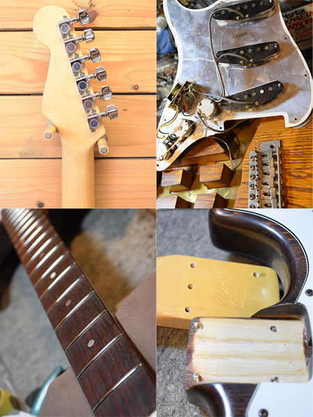 1978年製。当時セミオーダーシステム(受注生産)を採用したプロジェクトシリーズの800グレード!カシュー(バイオリン)仕上げのセンボディーに良質なローズ指板ネックを採用。ペグは当時高級部品のシャーラー製が使用された上位スペック!ナット幅は42.5mmでラディアス180Rのビンテージ風なグリップです。乾いた抜けの良いサウンドが印象的です。 カシュー仕上げ個体の割に色味もしっかり残っており傷も比較的少ない状態です(ヘッドにテンションバーのネジ跡有り)。フレット残量は6〜7分山程で年式の割にタップリ残っています(元がナローフレットですので近年のギターに慣れている方には低く感じると思われます)。09-42ゲージにてネック調整済みでトラスロッドに余裕がございます。オリジナル度も高めでペグやブリッジなどハードウェアはオリジナル(アームは違うようです)。電装系はボリュームPOT交換以外はオリジナルパーツで動作も良好です。調整&クリーニングバッチリの即戦力ビンテージ!お勧めです。 重量:3.5kg 付属品:汎用ソフトケース ■通信販売の際は別途送料一律\1,500(離島は除く)